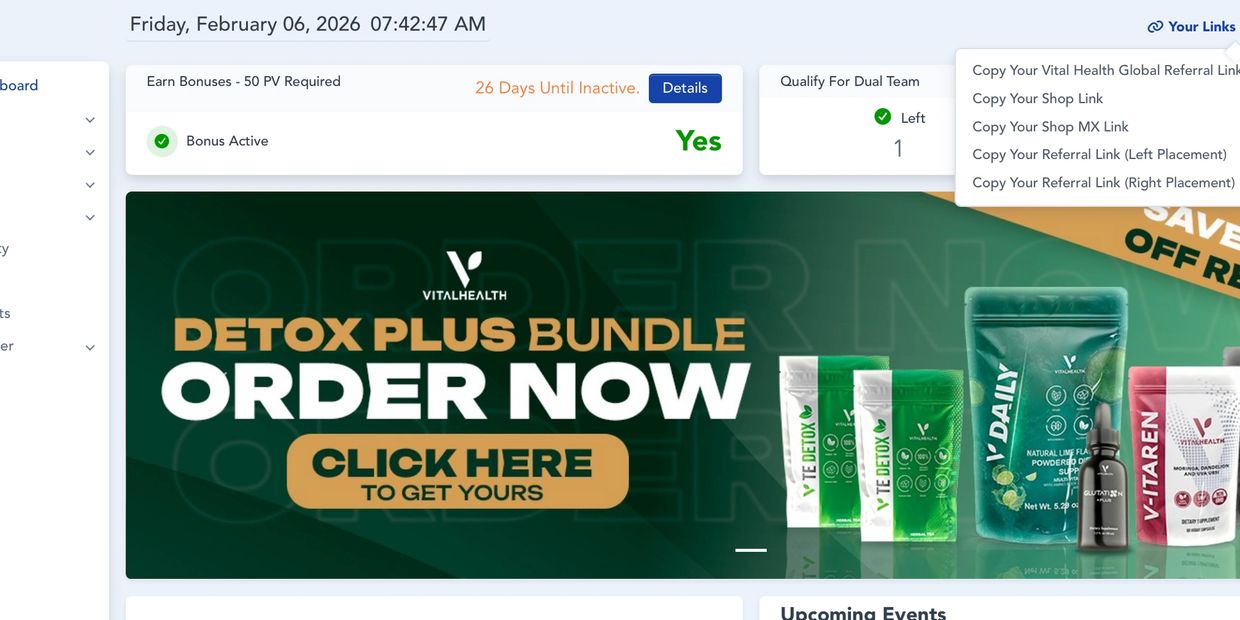 Takes them directly to your Vital Health shop. If they create an account or purchase, you earn commissions.